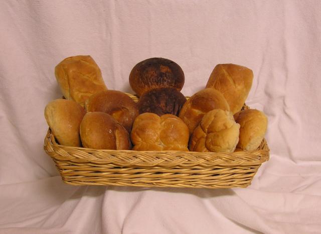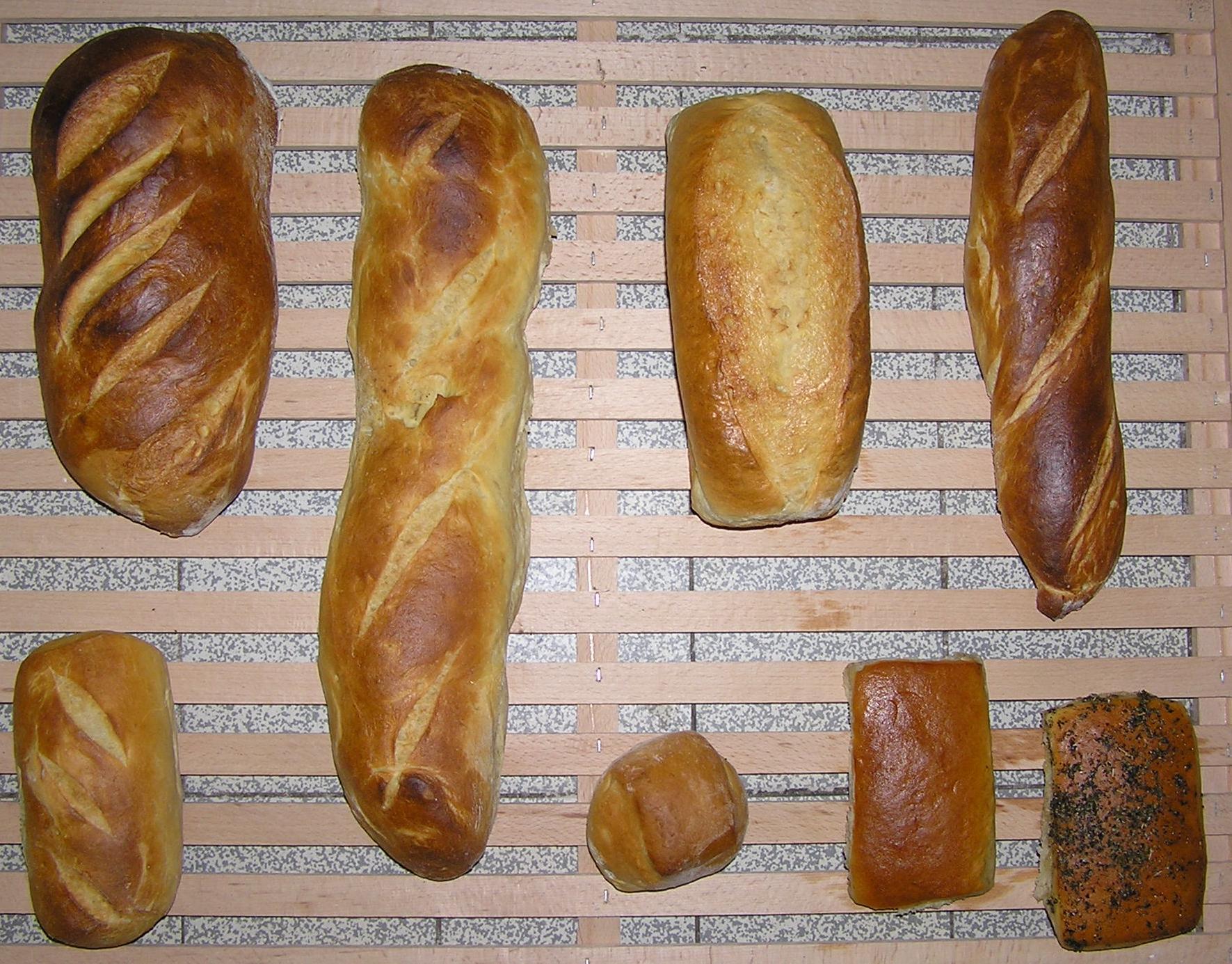 | Wasserweck, Quartettchen, Normale- und Kaiser-Broetchen sowie Flits aus Weissbrotteig |