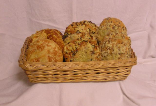 | Kaese-, Kuerbis-Kaese- und Sonnenblumen-Kaese-Broetchen. |
