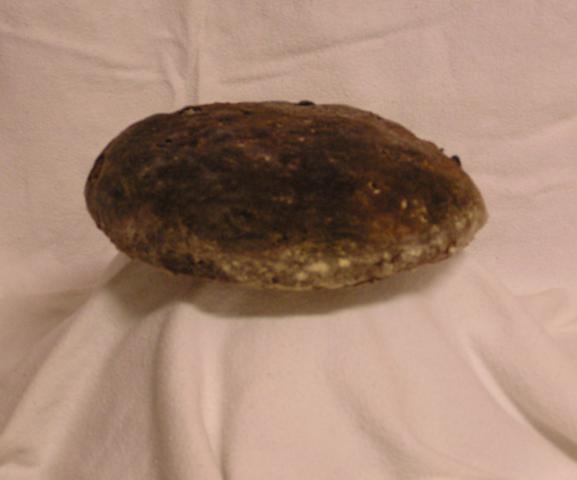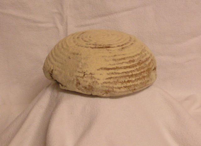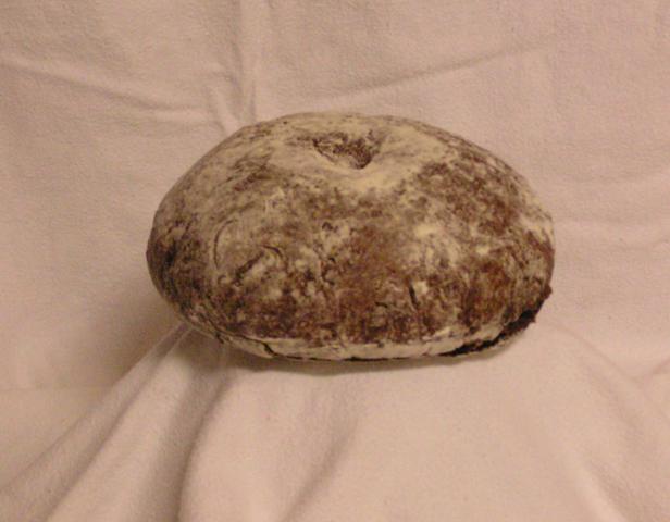 | Roggenbrot. 100% Roggen als rundes Korbbrot. |