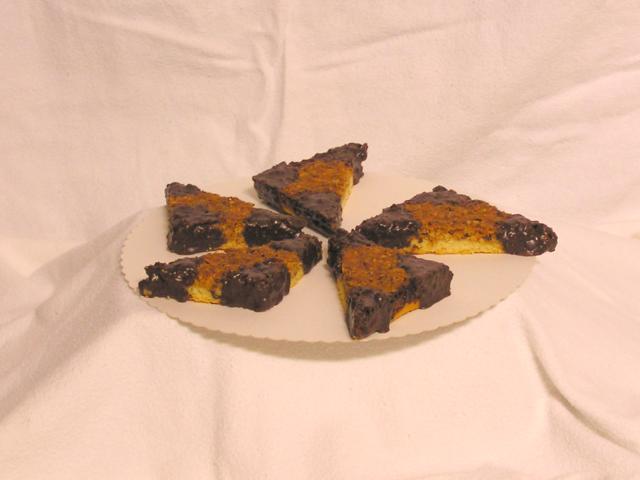 | Belgische Brocken - DIE spezialitaet des Hauses Hensler. Vorzugsweise mit Mohrenkopf gegessen, also Negerkuessen, aeh, mit Zartbitterschokolade ueberzogenen Zucker-Eischaum-Huegel auf Waffelbasis. |