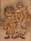 v.l.n.r. Hessenfrau, Hessenmann, Goettin der Fruchtbarkeit, Froskatische Wassertraegerin, Limburger Saecker unikat., darueber der Hahn