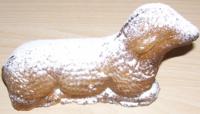 Die Form fuer das Osterlamm hab ich auch da (hier in Kuchenteig gehalten). Allerdings nur 1x, also bitte nicht zu viele davon verlangen ,-)